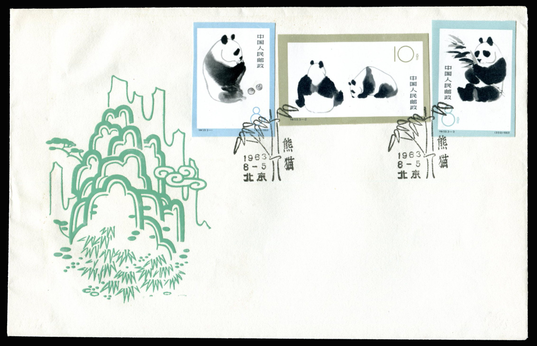 1963 Giant Panda set imperforated on FDC issued by China Philatelic Company, unaddressed.