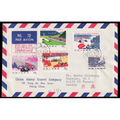 1977 Building Tachai-type set on official cover sent by airmail of China Stamp Export Company on first day of issuring to Sweden, additionally f...