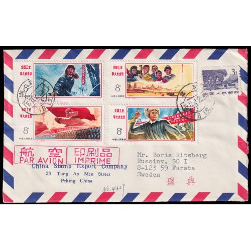 1977 Conference in Learning from Tashing set on official cover sent by airmail of China Stamp Export Company on first day of issuring to Sweden,...