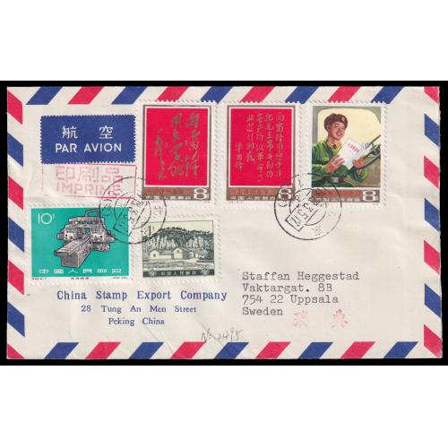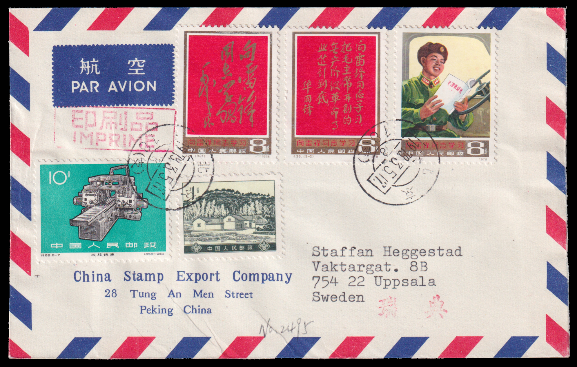 1978 Learn from Comrade Lei Fen set on official cover sent by airmail of China Stamp Export Company on first day of issuring to Sweden, additionally franked with R16/1f. VFThe deadline for pre-auction bidding for lot no. 1-558:10:00 CET on March 7. 2026, the online live/floor auction will start at 10:30 CET.