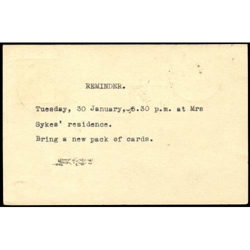 1934 7th print 1c pre-stamped Junk card used Tientsin locally.