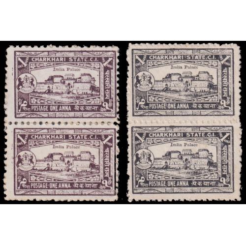 1931 CHARKHARI 1a Imlia Palace two pairs in unissued colors, proofs ?