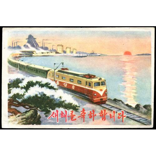 1965 Pre-stamped 10ch Building postcard with Train design on front unused.
