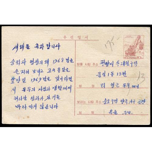 1990 Pre-stamped brown 10ch Mining Machine postcard with Workers design on front, used but not cancelled.The deadline for pre-auction bidding for lot no. 1-558:10:00 CET on March 7. 2026, the online live/floor auction will start at 10:30 CET.