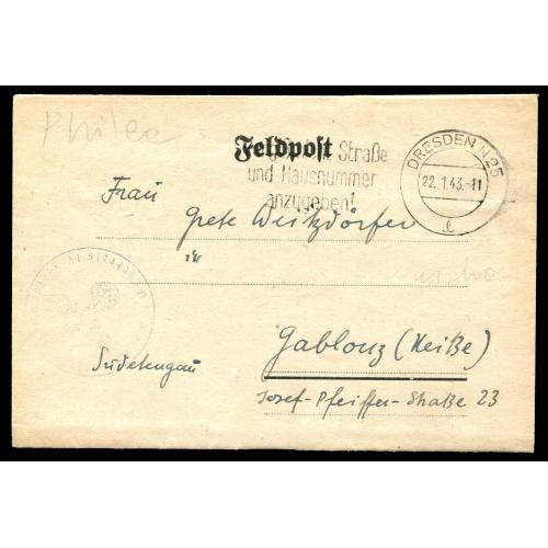 GERMANY 1943 Fieldpost letter sheet sent from Dresden, written in Aramaic language.The deadline for pre-auction bidding for lot no. 1-558:10:00 CET on March 7. 2026, the online live/floor auction will start at 10:30 CET.
