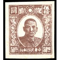 1945 North China Occ. Peiping Sin Min print SYS $50 deep violet brwon imperforated proof.