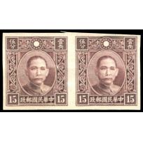 1943 Nanking and Shanghai Hong Kong Chung Hwa print SYS 15c brwon imperforated pair.