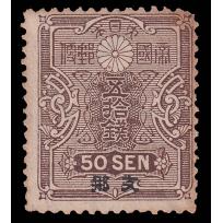 1914 Japanese P.O. Japanese Taisho series 50s opt with "China", with age toning, short top-right co...