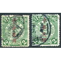 1912 Waterlow overprint with "ROC" on Coiling Dragon 2c x 2, one with fat right "2" variety.