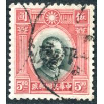 1931 Dr. Sen Yat-sen 1st London print $5 used with Pingliang Anti-bandit chop.