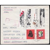 1980 Paintings of Qi Baishi on official cover sent by registered airmail of China Stamp Export Com...