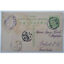 1910 Aug.18 Reply part of 4th issued 1c + 1c pre-stamped double cards sent from Suntong, Kwangtung...