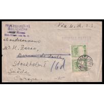 1937 ? Cover for printed matter sent from Harbin to Sweden, franked with 2c pair 4th regular stamp...