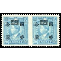 1945 CNC surch. $20 on 20c Martyr in pair with imperforation between variety. Chan:901d.