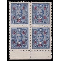 1948 Gold Yuan surch. 10c on $20 blue SYS block of 4 with bottom margin, p12. Chan:G12b $120.